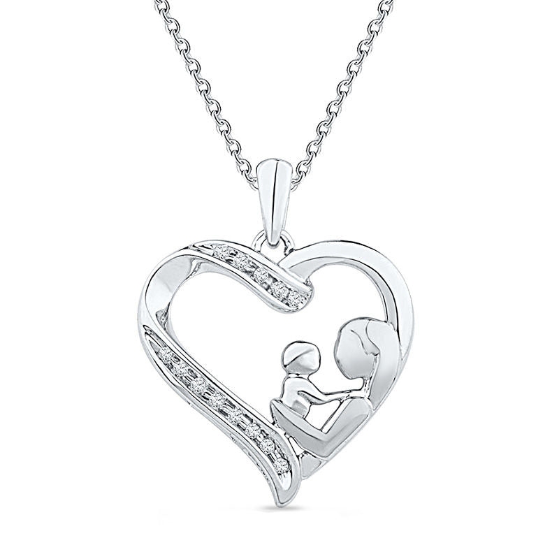 Natural Diamond Accent Motherly Love Heart Pendant in Sterling Silver