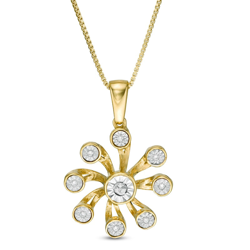 Natural Diamond Accent Open Pinwheel Pendant in Sterling Silver with 14K Gold Plate