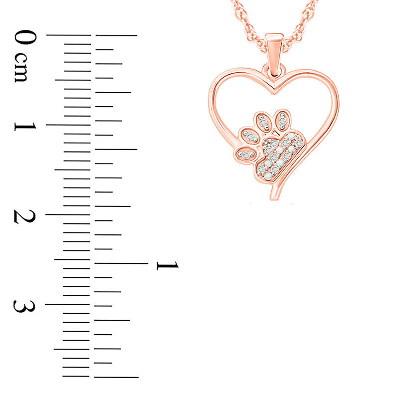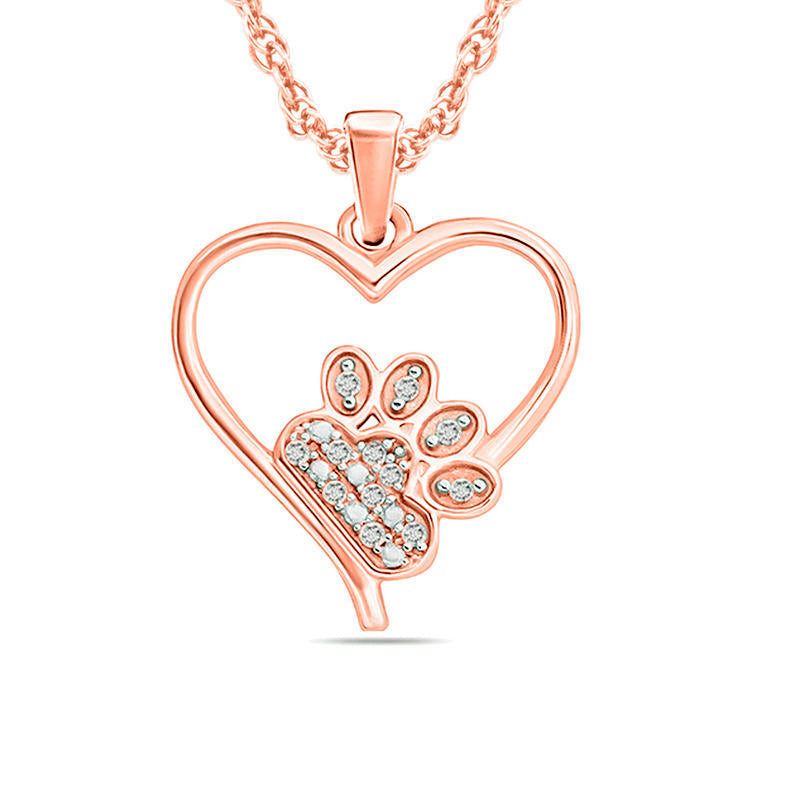 Natural Diamond Accent Paw Print Heart Pendant in Sterling Silver with 14K Rose Gold Plate