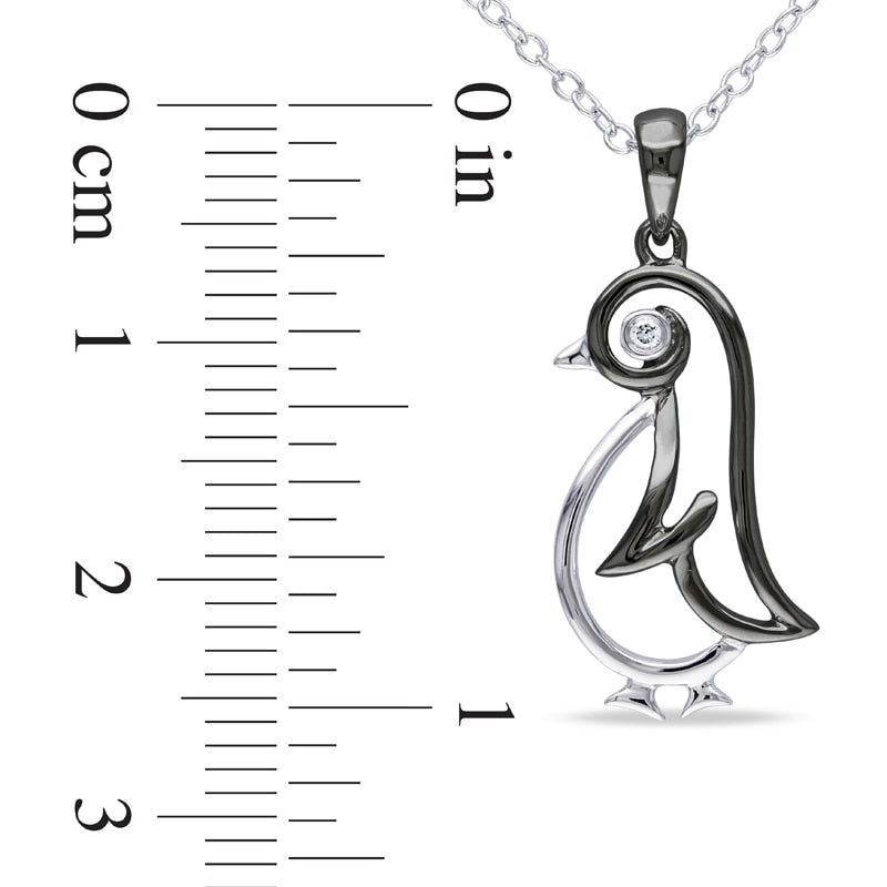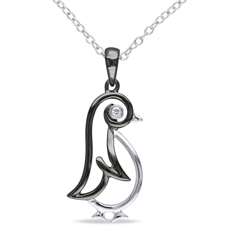 Natural Diamond Accent Penguin Pendant in Two-Tone Sterling Silver