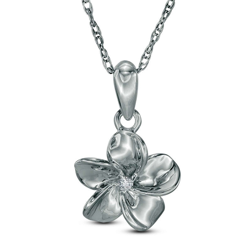 Natural Diamond Accent Pinwheel Flower Pendant in Sterling Silver
