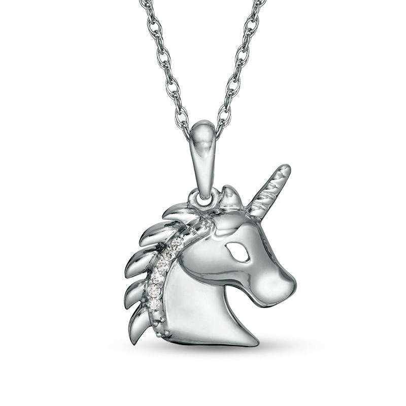 Natural Diamond Accent Profile Unicorn Head Pendant in Sterling Silver