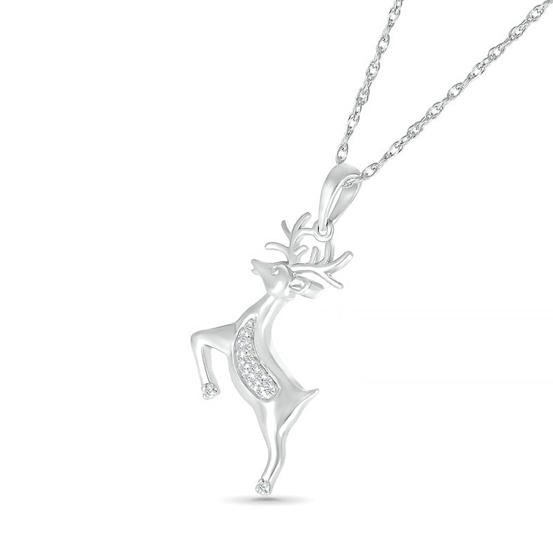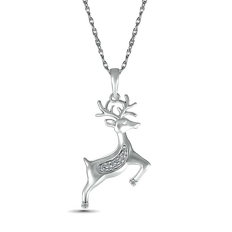 Natural Diamond Accent Reindeer Pendant in Sterling Silver