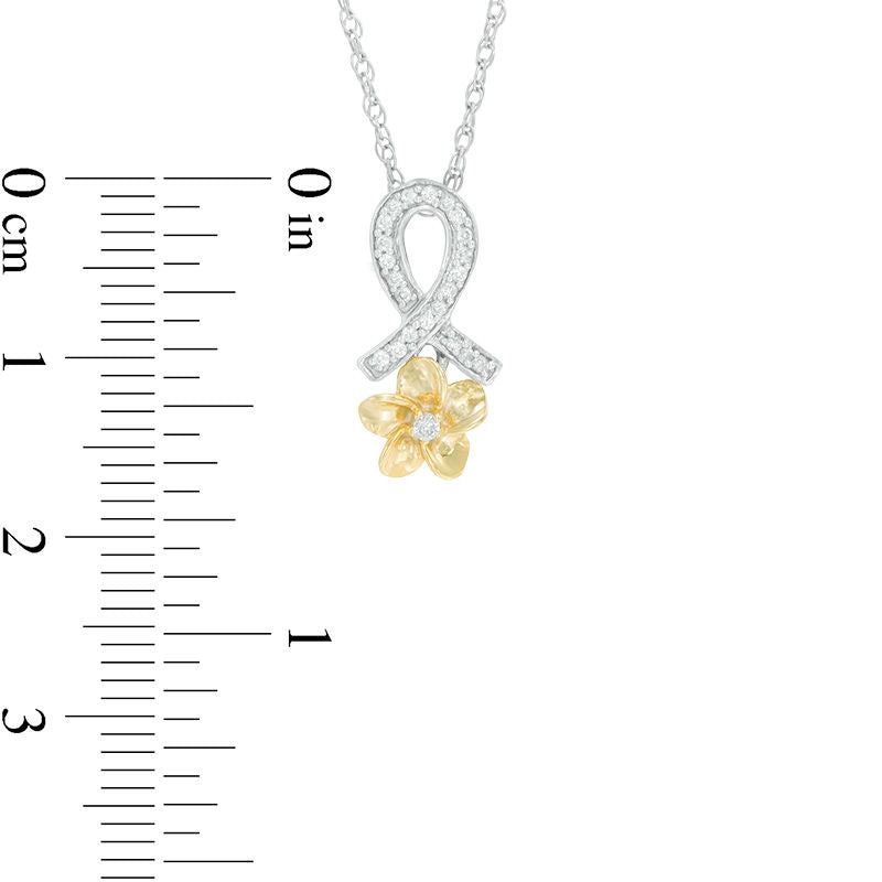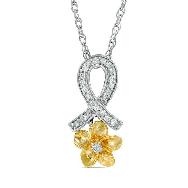 Natural Diamond Accent Ribbon Flower Pendant in Sterling Silver and 10K Yellow Gold