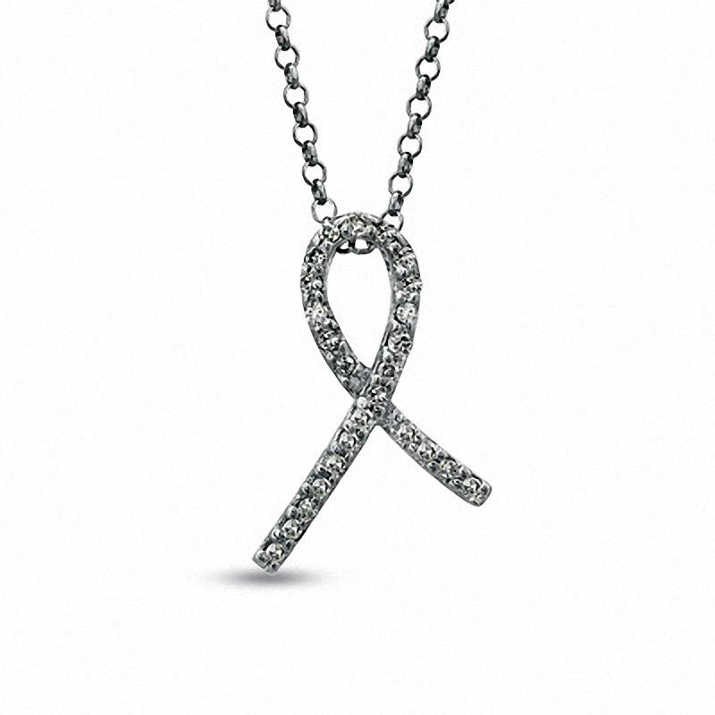 Natural Diamond Accent Ribbon Pendant in Sterling Silver