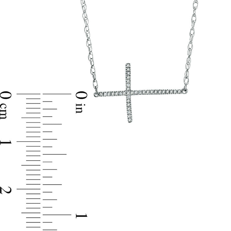 Natural Diamond Accent Sideways Cross Necklace in Sterling Silver