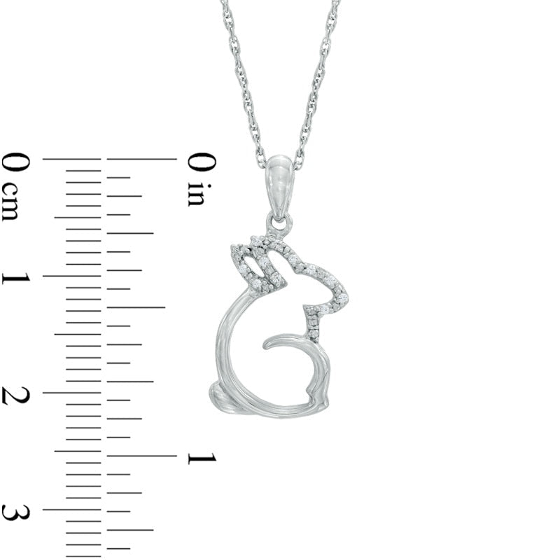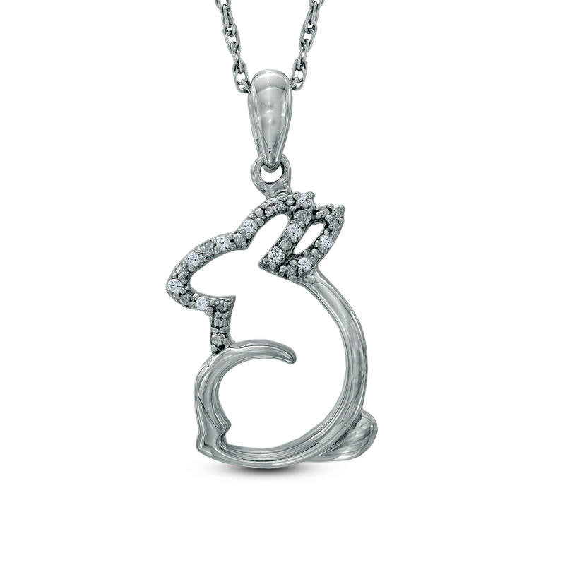 Natural Diamond Accent Sitting Rabbit Pendant in Sterling Silver