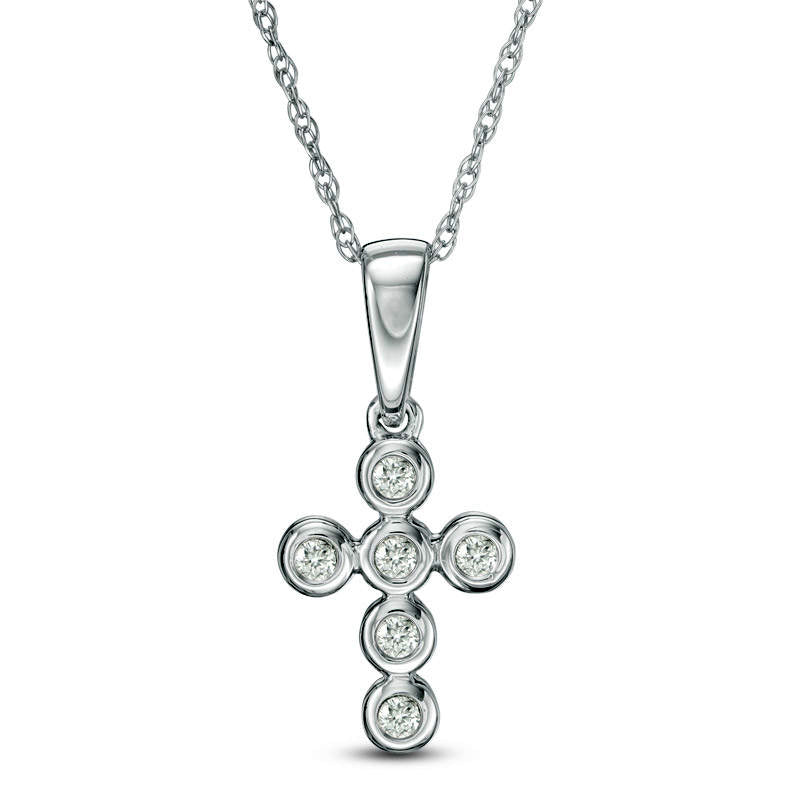 Natural Diamond Accent Six Stone Cross Pendant in 10K White Gold