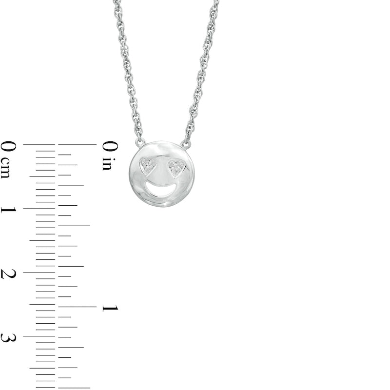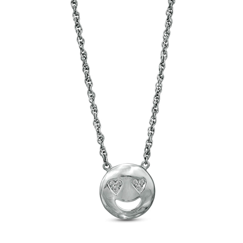 Natural Diamond Accent Smiley Face with Heart-Eyes Necklace in Sterling Silver