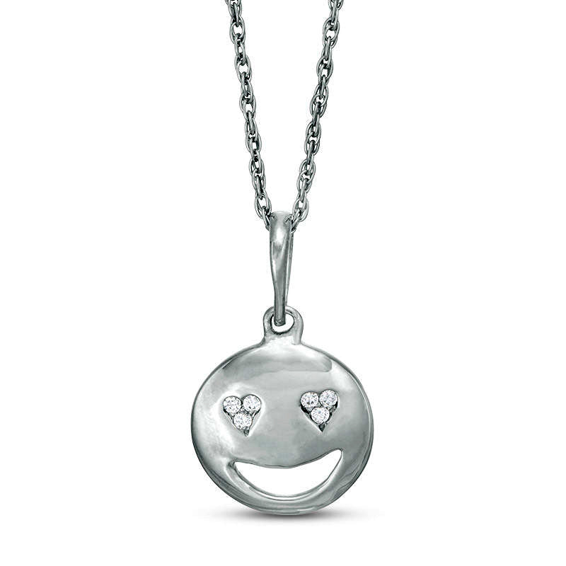 Natural Diamond Accent Smiley Face with Heart-Eyes Pendant in Sterling Silver