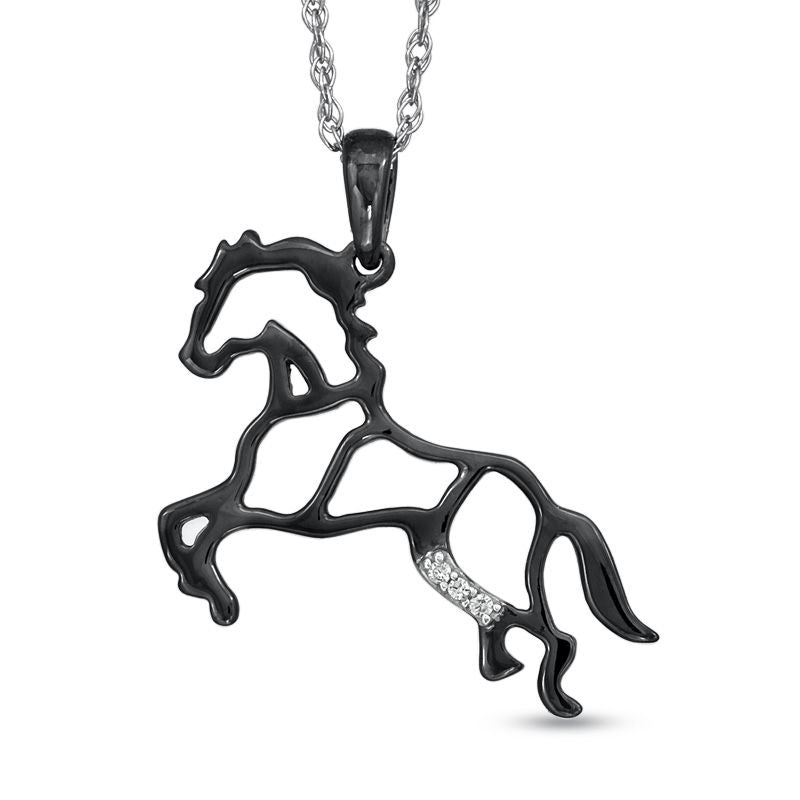 Natural Diamond Accent Stallion Horse Pendant in Black Rhodium Sterling Silver