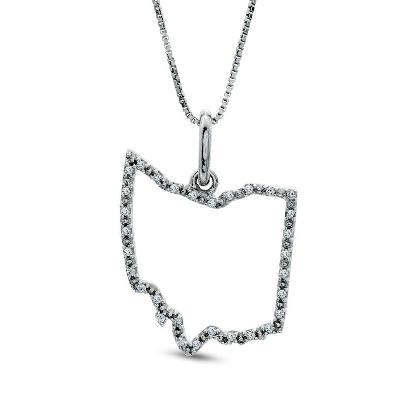 Natural Diamond Accent State of Ohio Outline Pendant in Sterling Silver