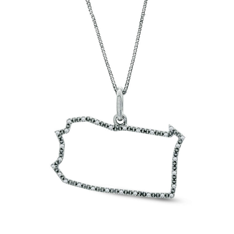 Natural Diamond Accent State of Pennsylvania Outline Pendant in Sterling Silver