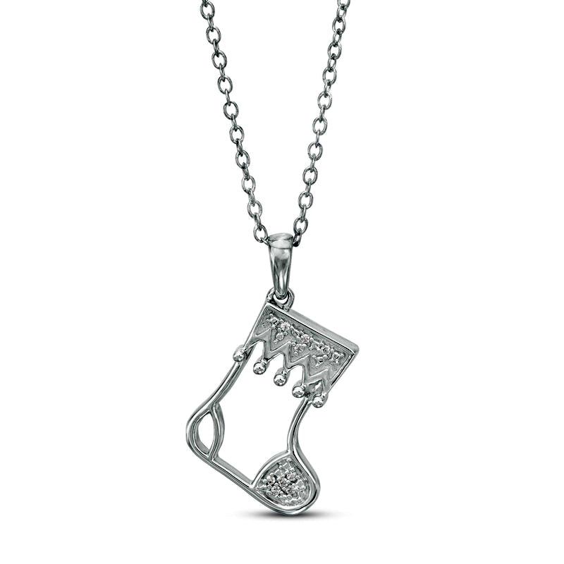 Natural Diamond Accent Stocking Outline Pendant in Sterling Silver