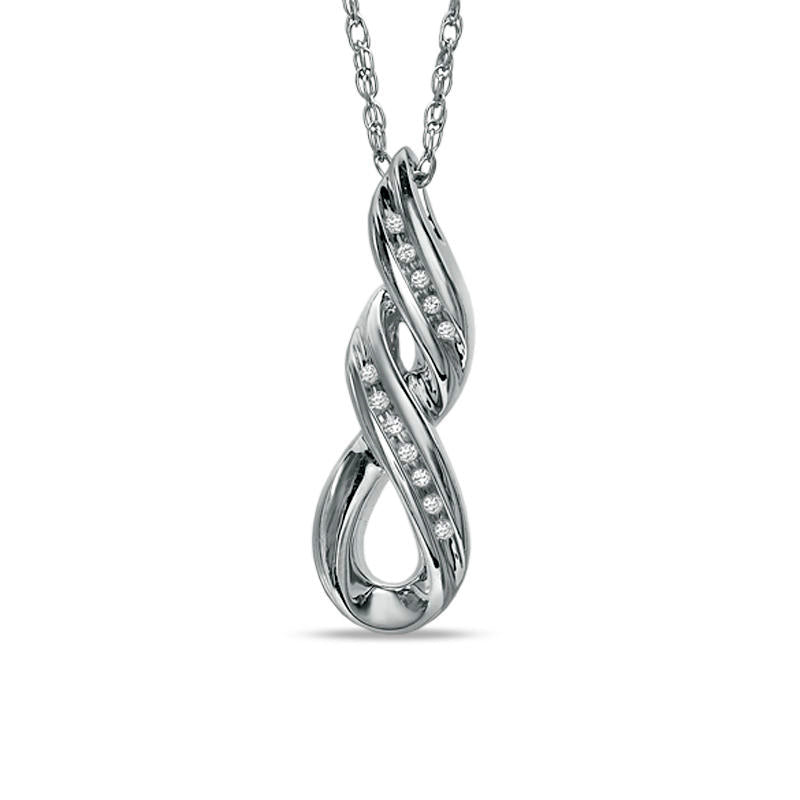 Natural Diamond Accent Swirl Loop Pendant in Sterling Silver