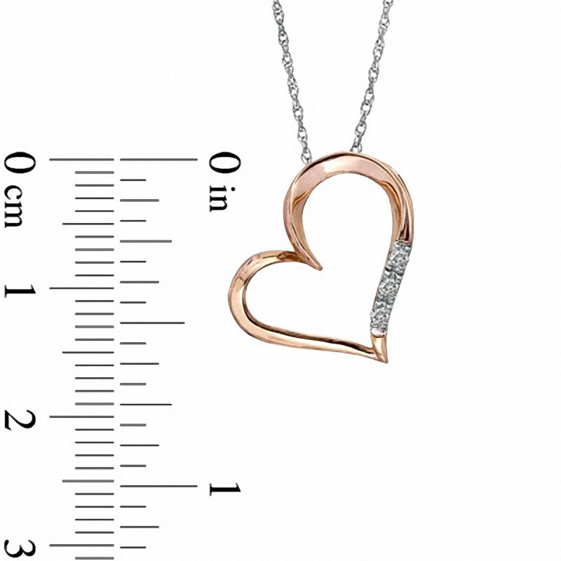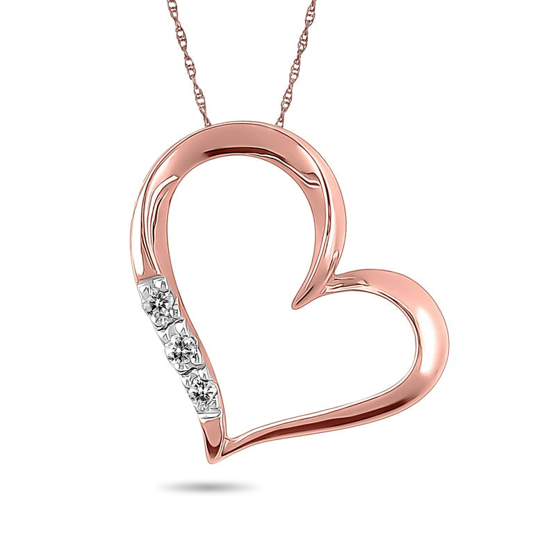 Natural Diamond Accent Three Stone Tilted Heart Pendant in 10K Rose Gold
