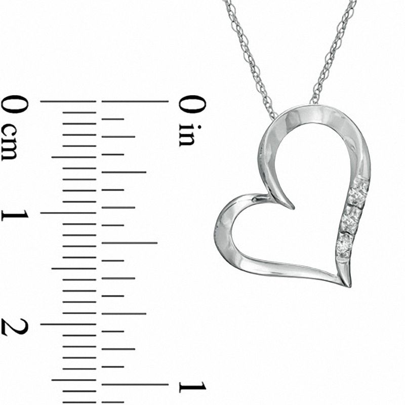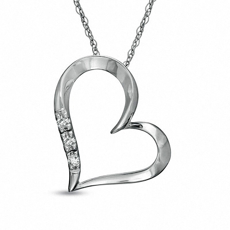 Natural Diamond Accent Three Stone Tilted Heart Pendant in 10K White Gold