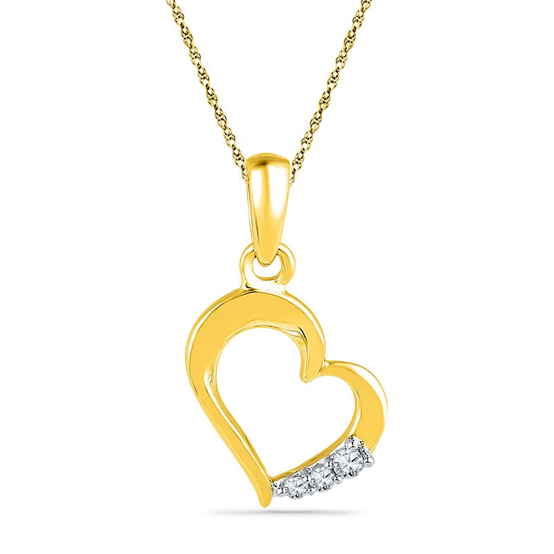 Natural Diamond Accent Three Stone Tilted Heart Pendant in 10K Yellow Gold