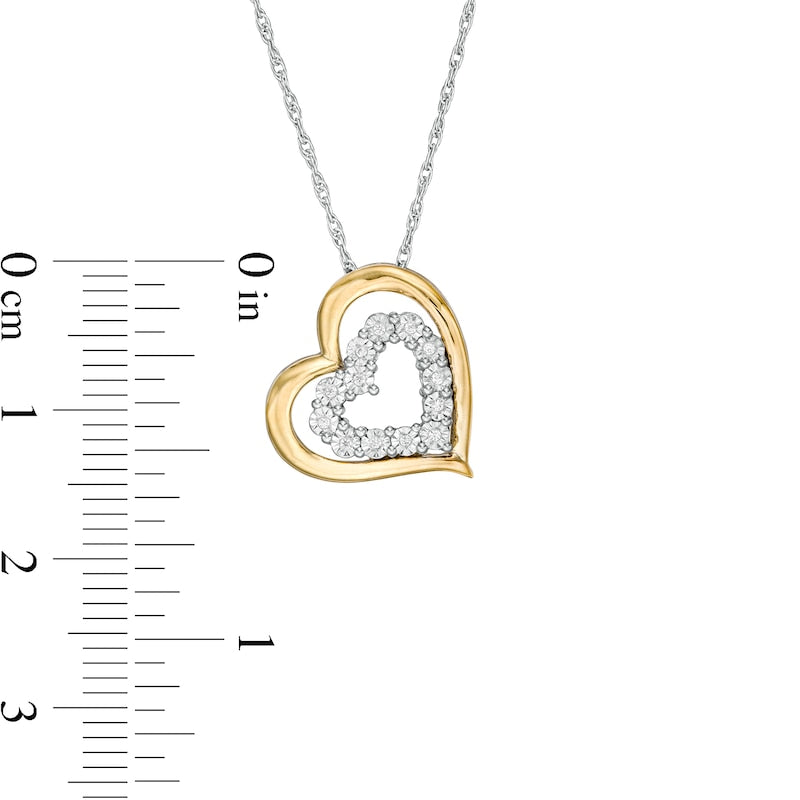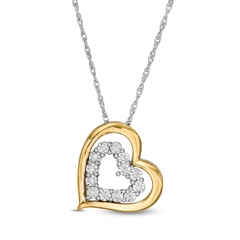 Natural Diamond Accent Tilted Double Heart Pendant in Sterling Silver and 10K Yellow Gold