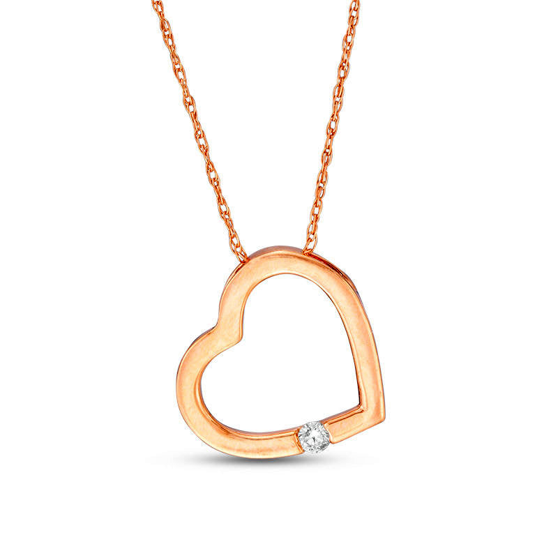 Natural Diamond Accent Tilted Heart Pendant in 10K Rose Gold