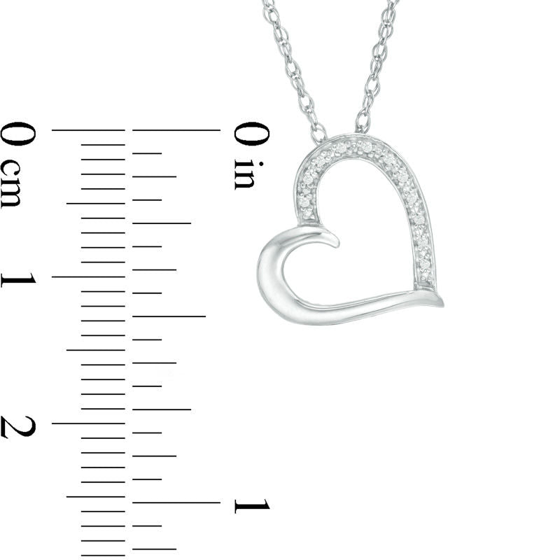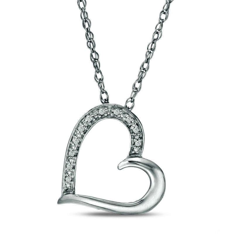 Natural Diamond Accent Tilted Heart Pendant in 10K White Gold