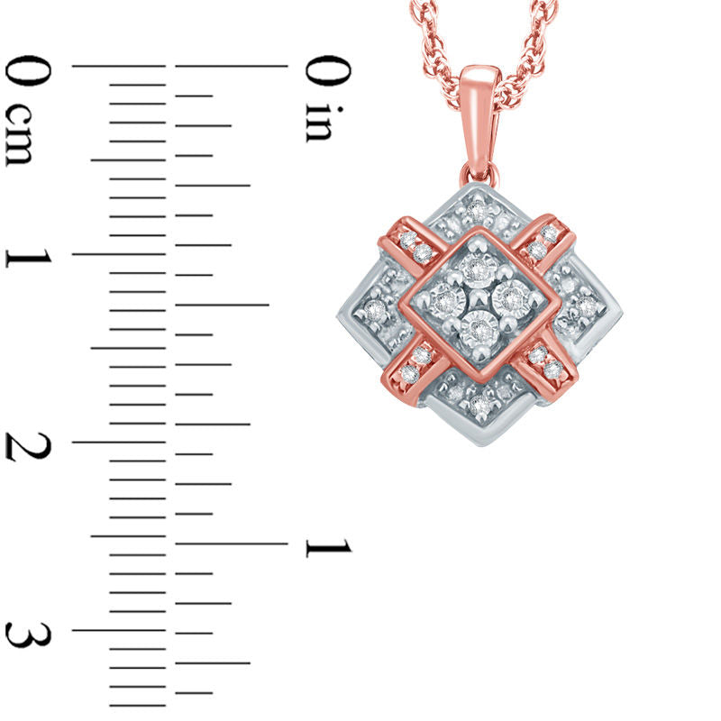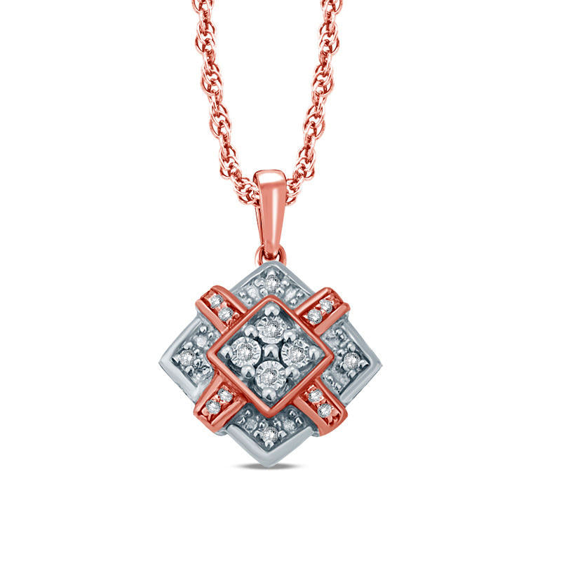 Natural Diamond Accent Tilted Square Pendant in Sterling Silver and 14K Rose Gold Plate