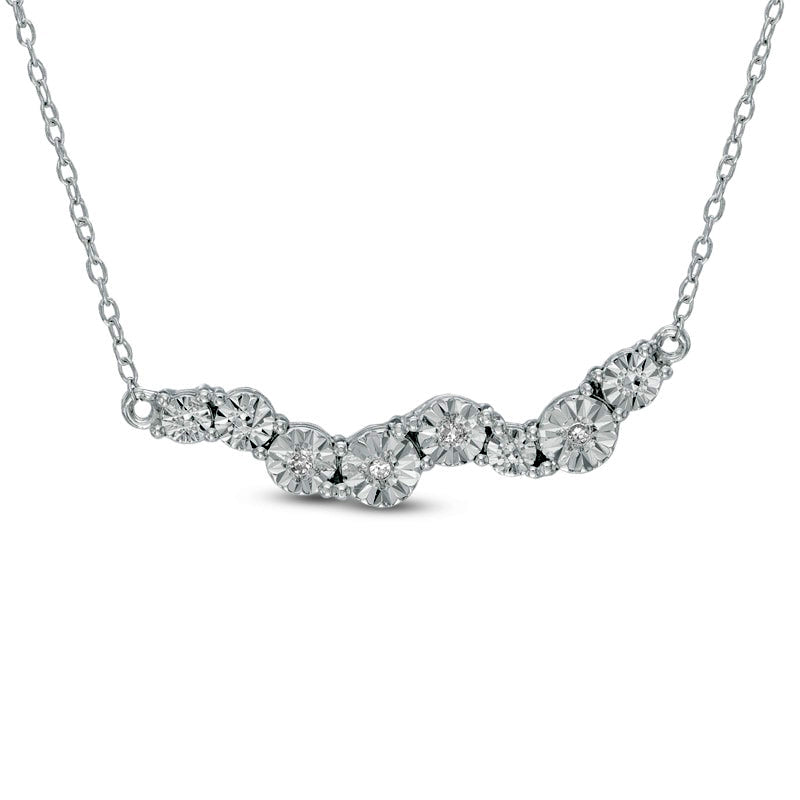 Natural Diamond Accent Wavy Line Necklace in Sterling Silver