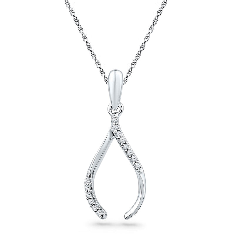 Natural Diamond Accent Wishbone Pendant in 10K White Gold