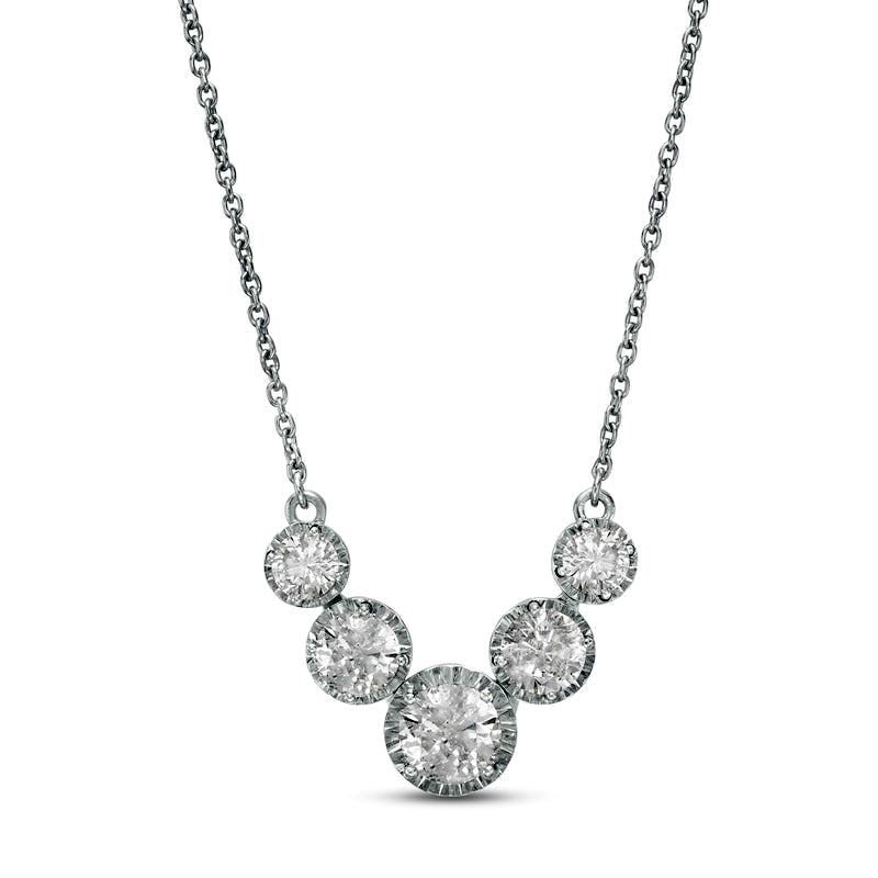 Natural Diamonds Amplified 1 CT. T.W. Natural Diamond Five Stone Necklace in 10K White Gold