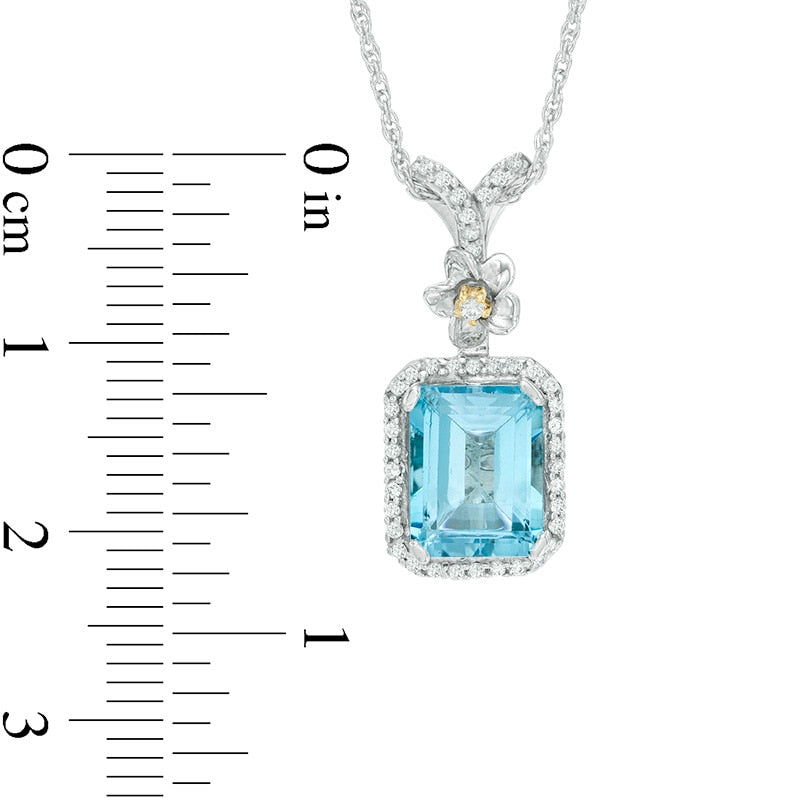 Octagonal Blue Topaz and 0.17 CT. T.W. Natural Diamond Frame with Flower Pendant in Sterling Silver and 10K Yellow Gold