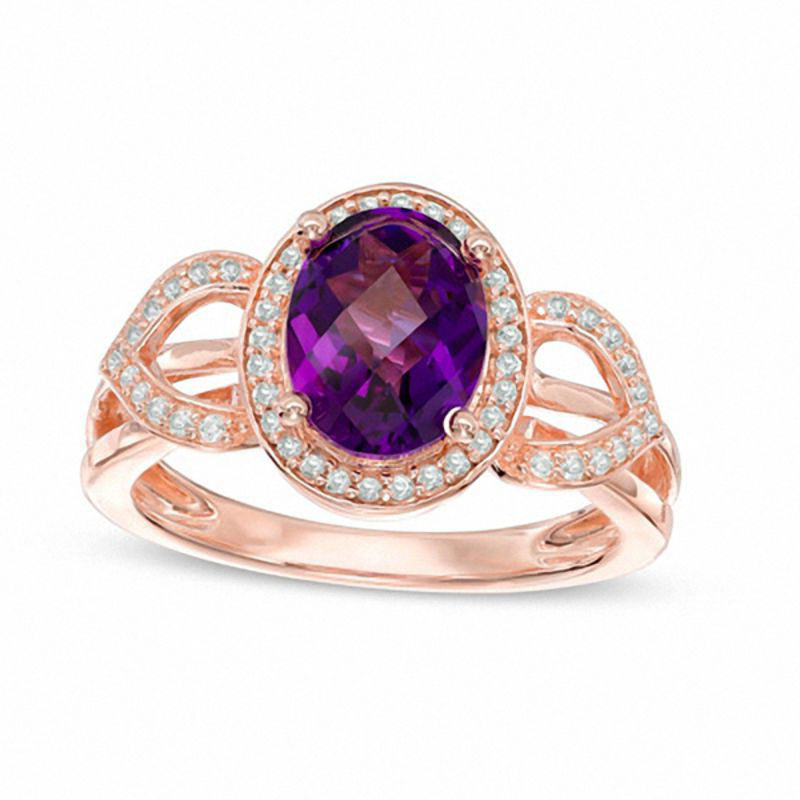 Oval Amethyst and 0.20 CT. T.W. Natural Diamond Frame Petal Ring in Solid 10K Rose Gold