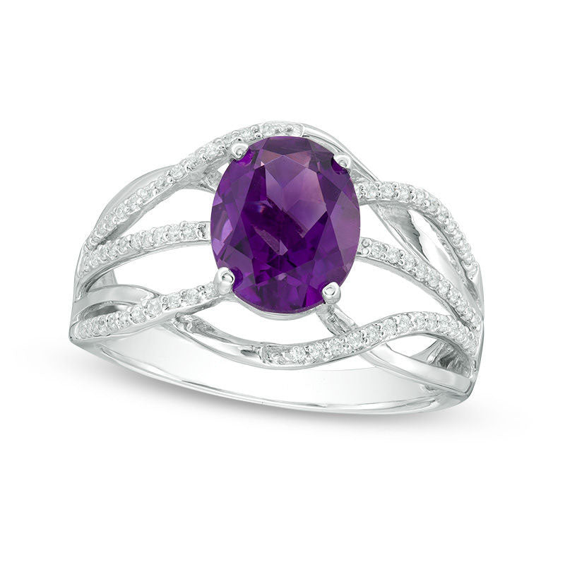 Oval Amethyst and 0.20 CT. T.W. Natural Diamond Layered Crossover Ring in Sterling Silver