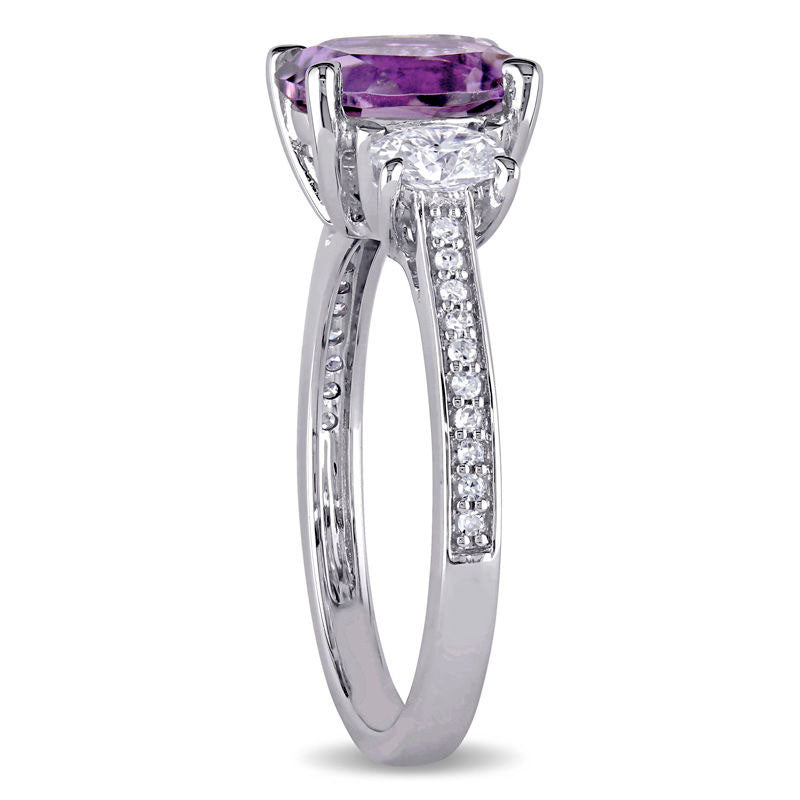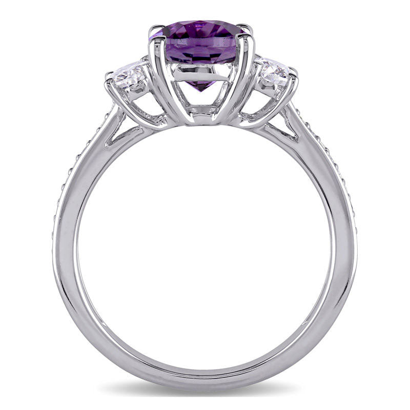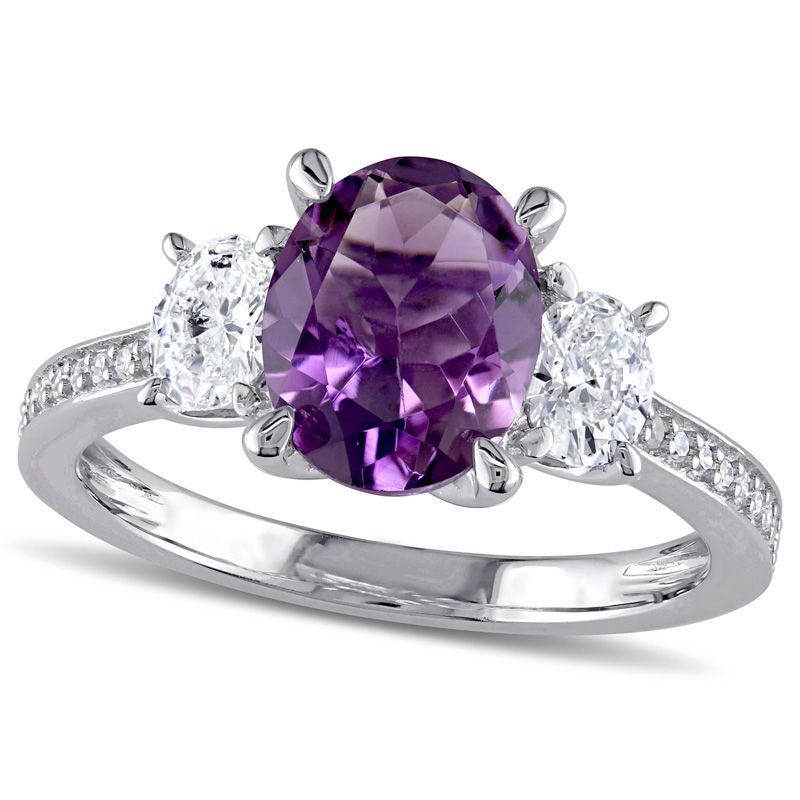 Oval Amethyst and 0.63 CT. T.W. Natural Diamond Three Stone Ring in Solid 14K White Gold