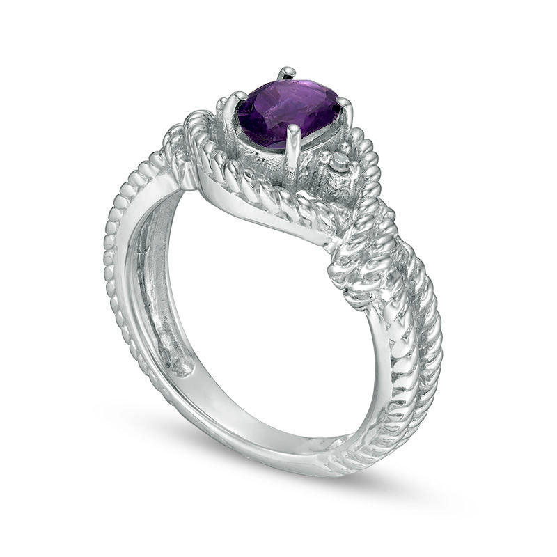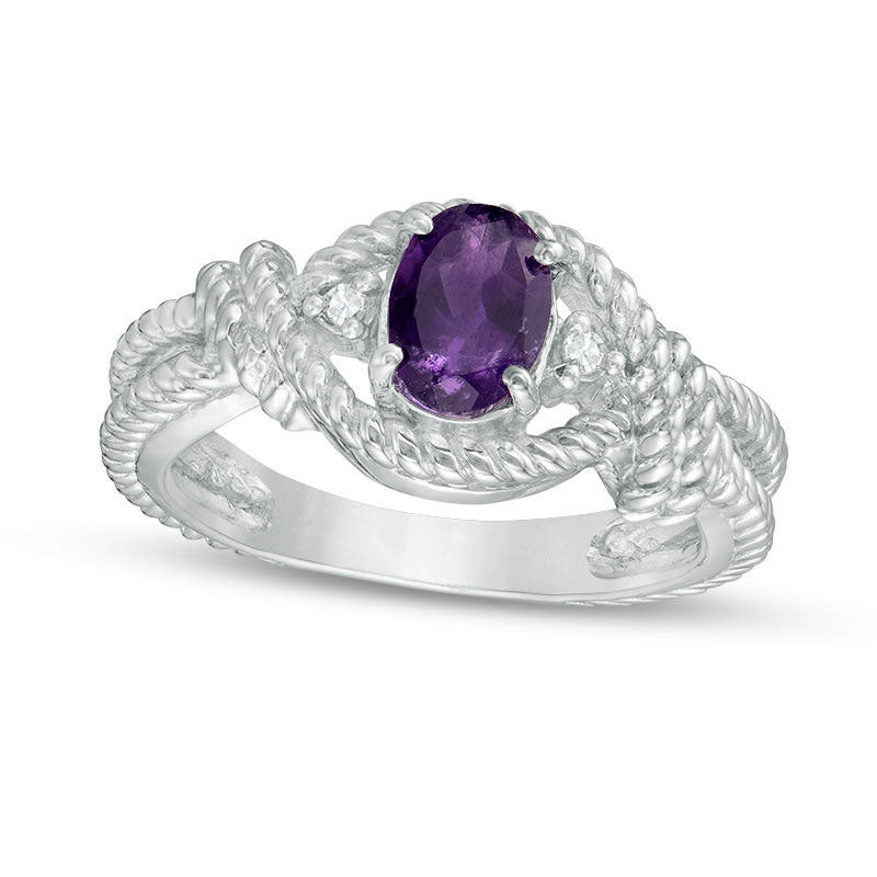 Oval Amethyst and Natural Diamond Accent Bypass Roped Shank Ring in Sterling Silver