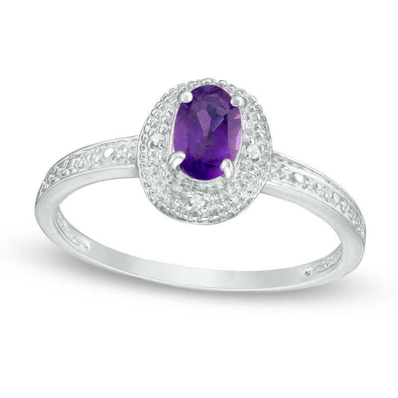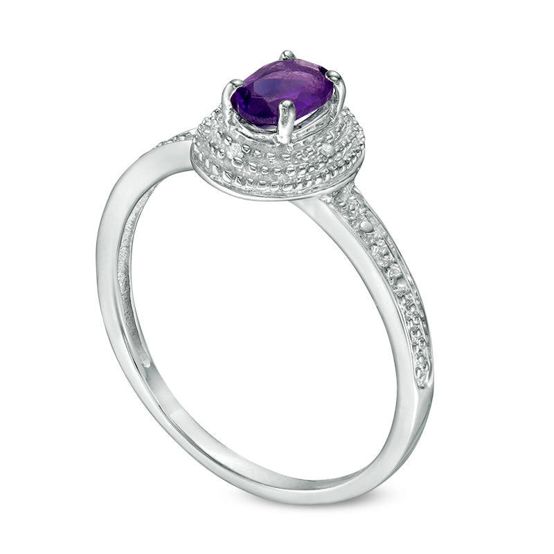 Oval Amethyst and Natural Diamond Accent Frame Antique Vintage-Style Ring in Sterling Silver