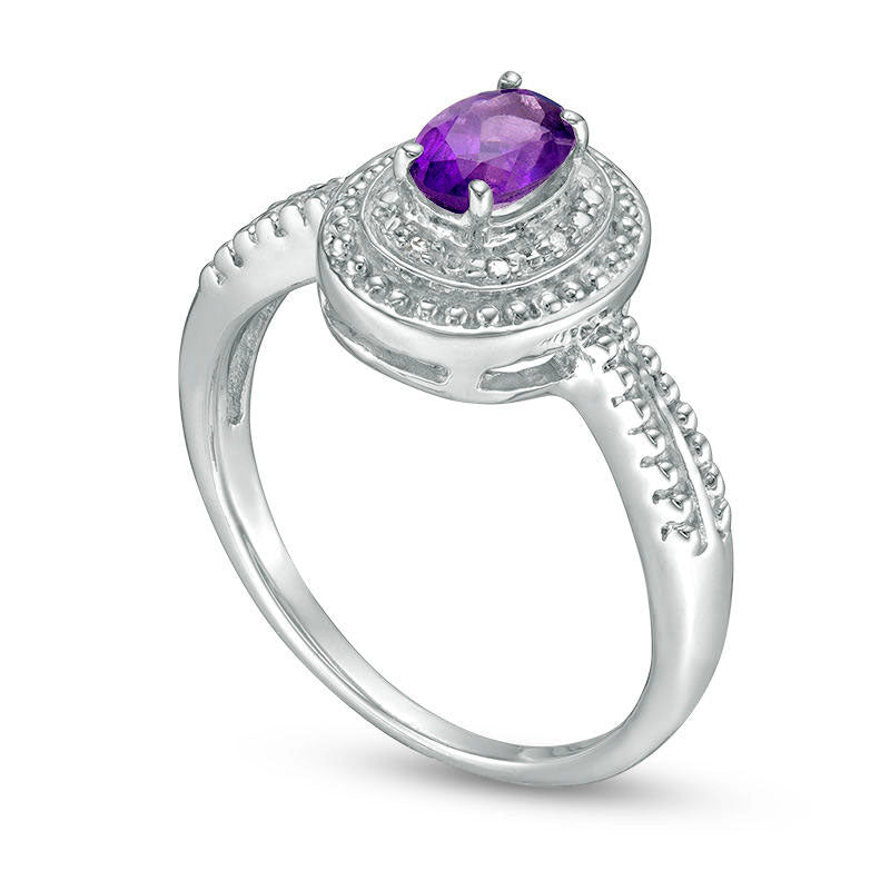 Oval Amethyst and Natural Diamond Accent Frame Ring in Sterling Silver