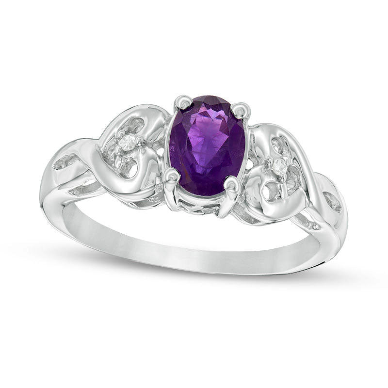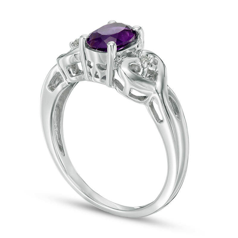 Oval Amethyst and Natural Diamond Accent Heart-Sides Ring in Sterling Silver