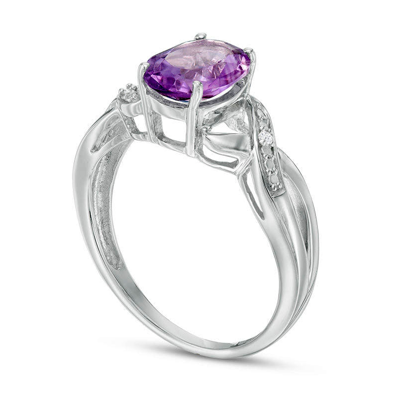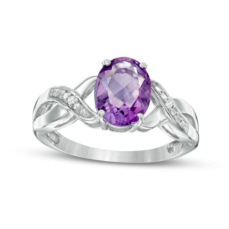 Oval Amethyst and Natural Diamond Accent Twist Ring in Sterling Silver