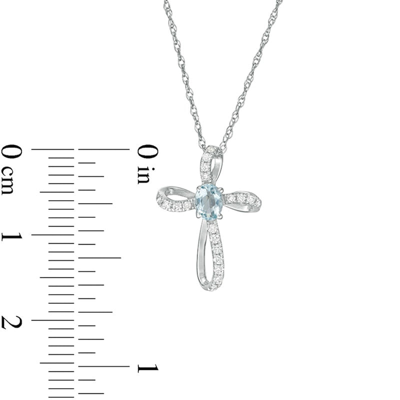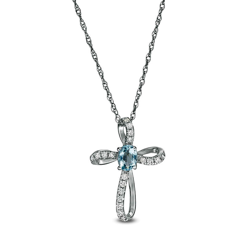 Oval Aquamarine and 0.1 CT. T.W. Natural Diamond Pinwheel Cross Pendant in 10K White Gold