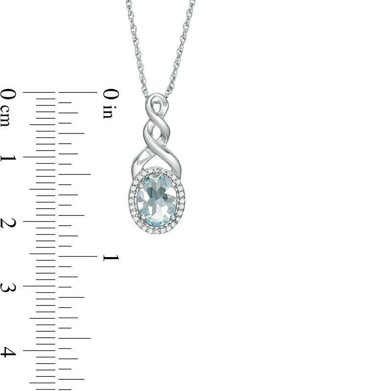 Oval Aquamarine and Natural Diamond Accent Frame Twist Pendant in Sterling Silver