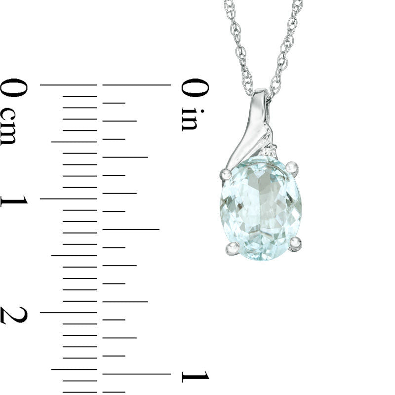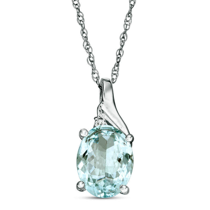 Oval Aquamarine and Natural Diamond Accent Swirl Top Pendant in 10K White Gold