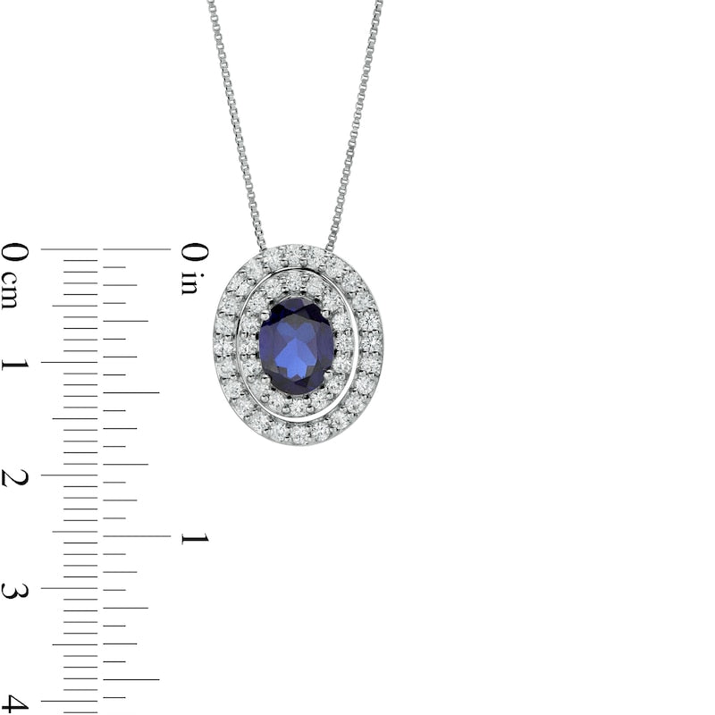 Oval Blue and White Lab-Created Sapphire Convertible Pendant in Sterling Silver
