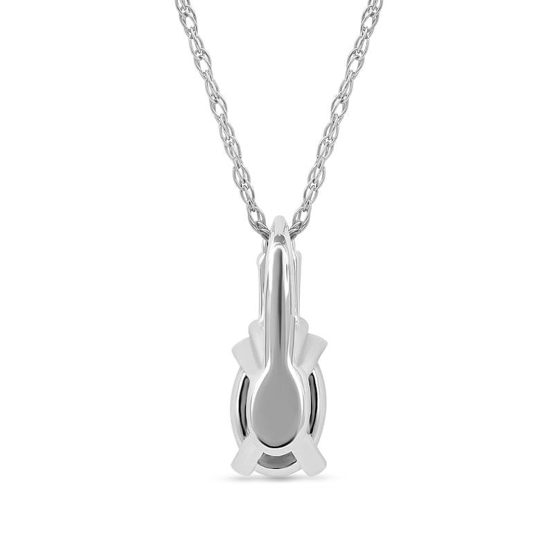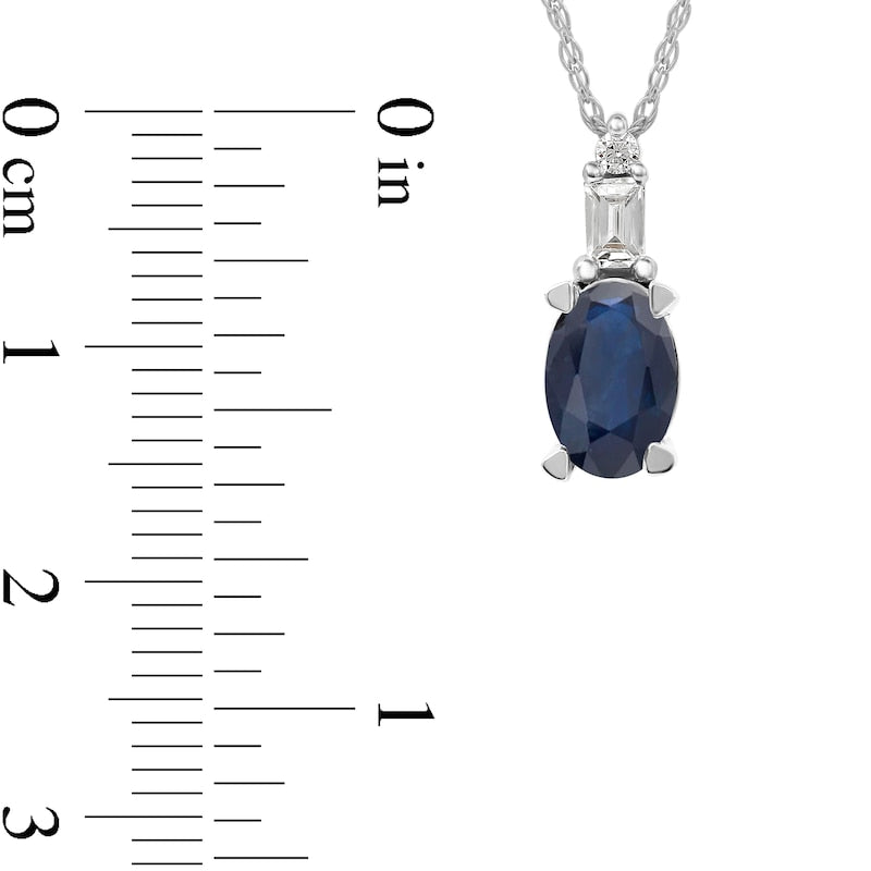 Oval Blue Sapphire and 0.05 CT. T.W. Baguette and Round Natural Diamond Stacked Top Accent Pendant in 10K White Gold