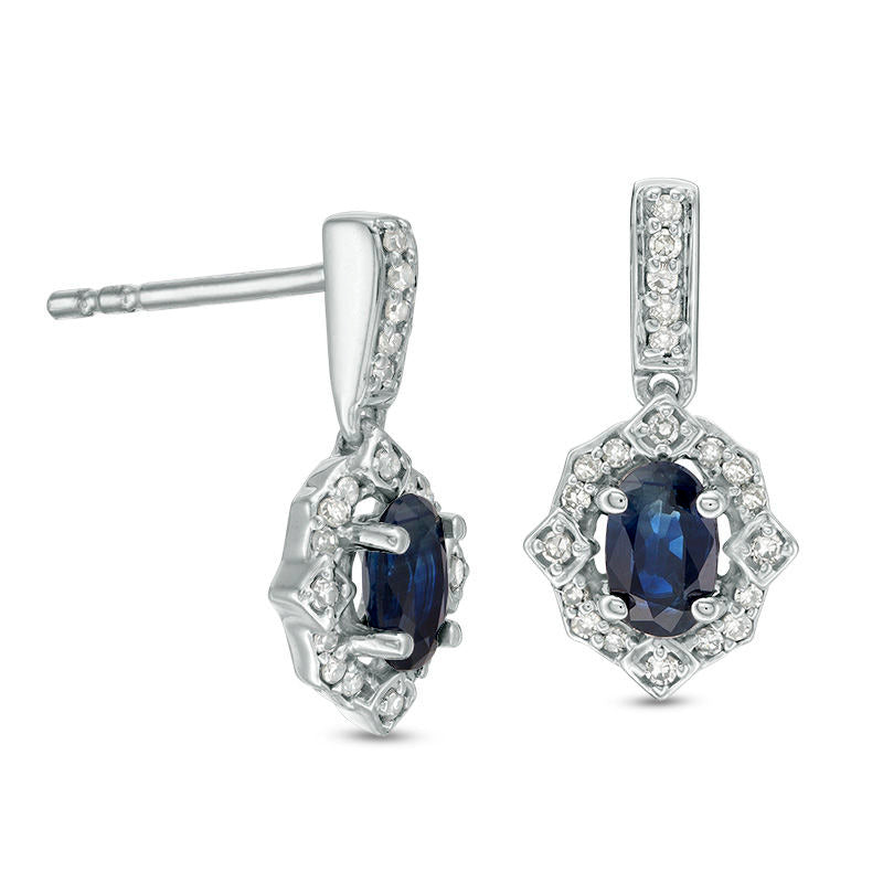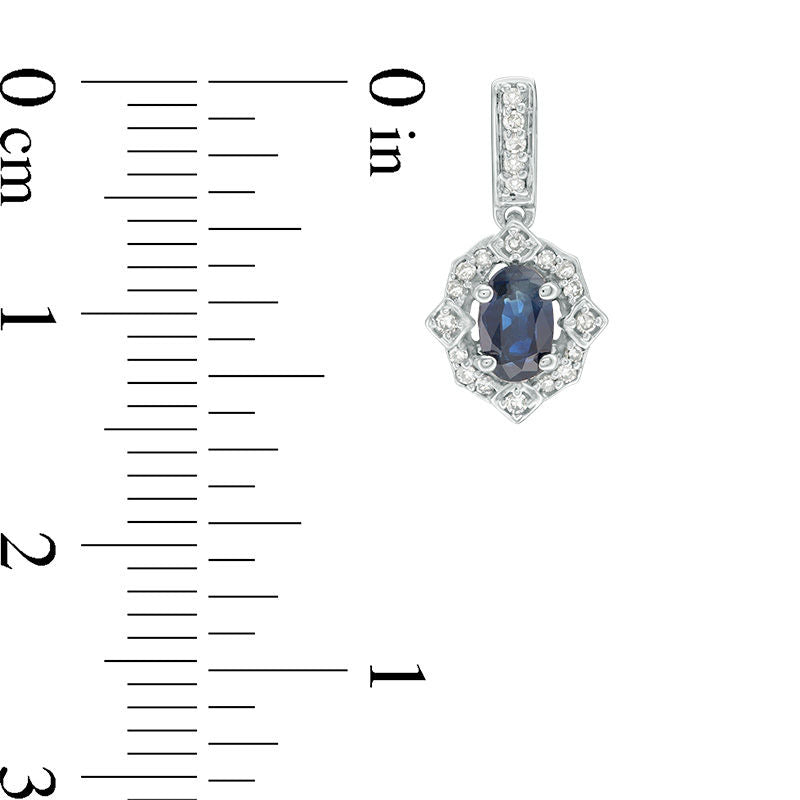Oval Blue Sapphire and 0.13 CT. T.W. Diamond Ornate Frame Drop Earrings in 10K White Gold