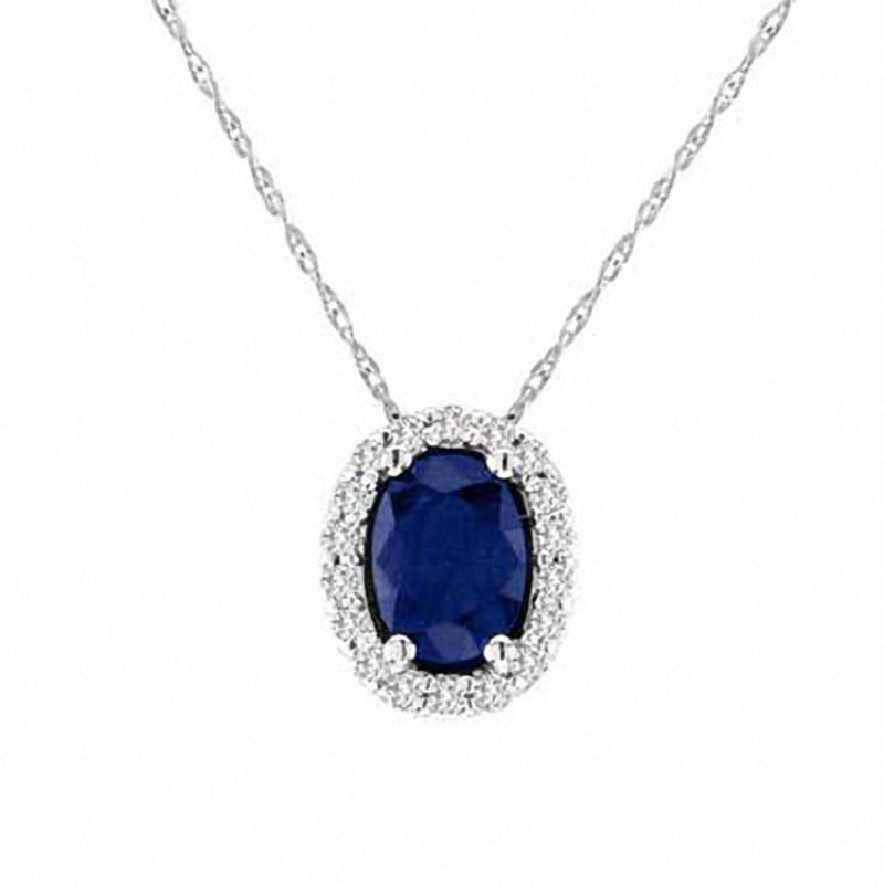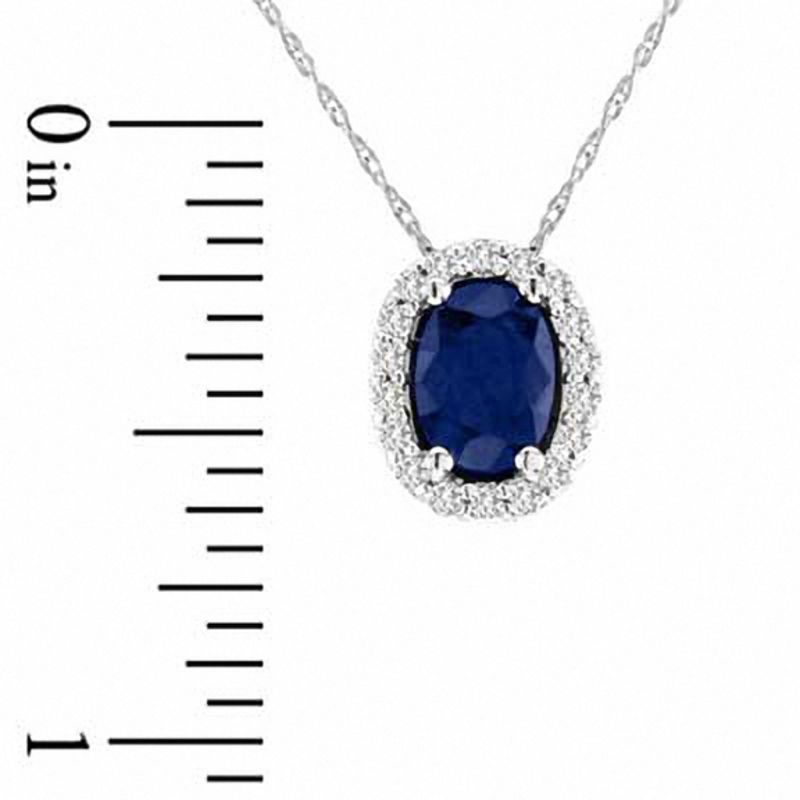 Oval Blue Sapphire and 0.17 CT. T.W. Natural Diamond Pendant in 14K White Gold