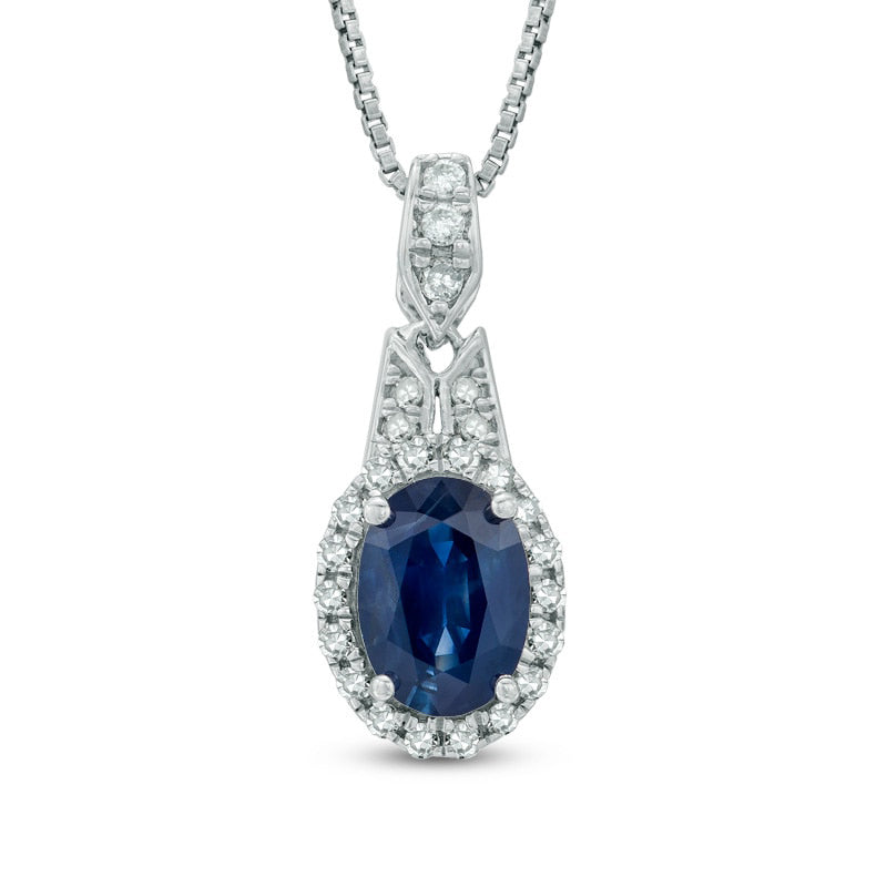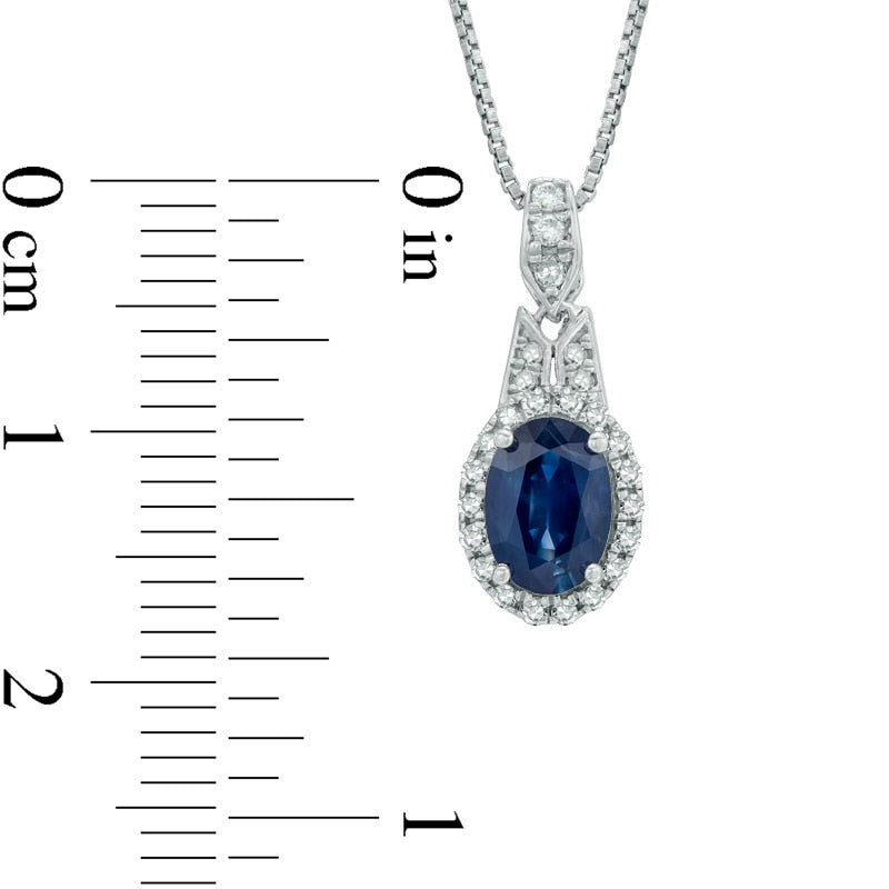 Oval Blue Sapphire and 0.17 CT. T.W. Natural Diamond Pendant in Sterling Silver