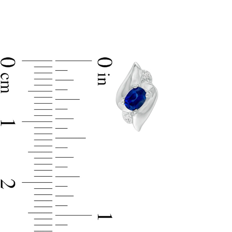 Oval Blue Sapphire and Diamond Accent Flame Stud Earrings in 14K White Gold