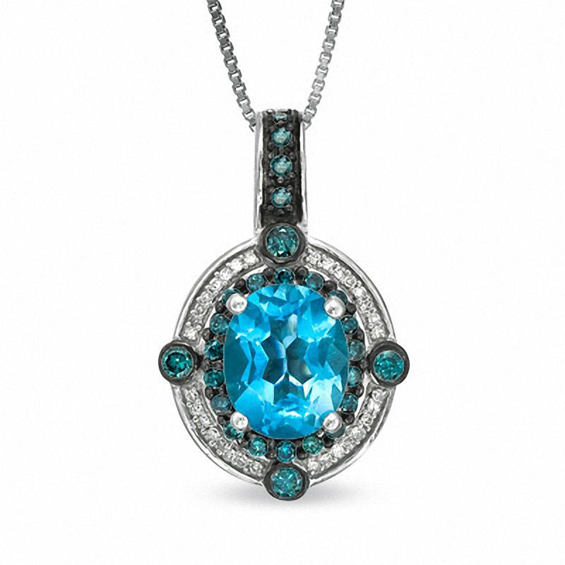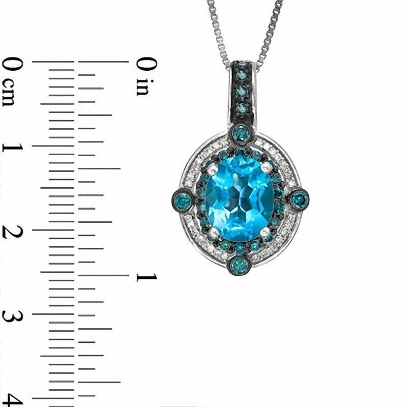 Oval Blue Topaz and 0.5 CT. T.W. Enhanced Blue and White Natural Diamond Pendant in Sterling Silver