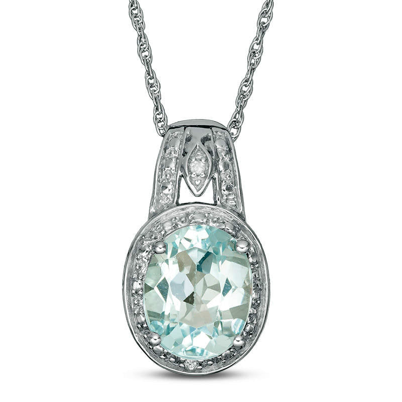 Oval Blue Topaz and Natural Diamond Accent Frame Pendant in Sterling Silver
