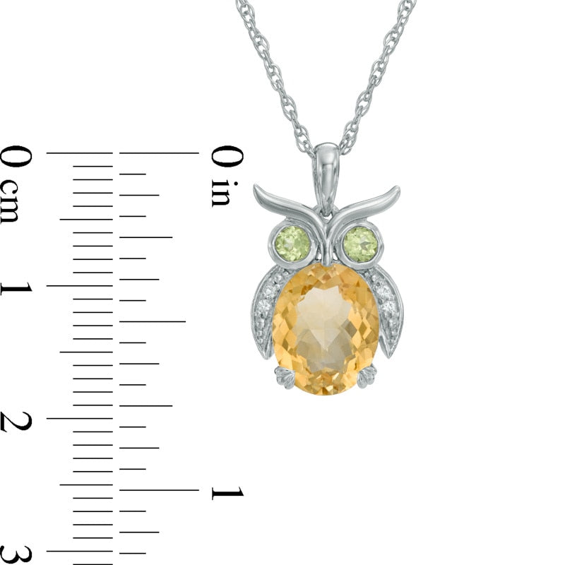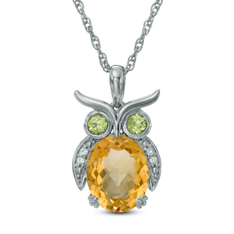 Oval Citrine, Peridot and Lab-Created White Sapphire Owl Pendant in Sterling Silver